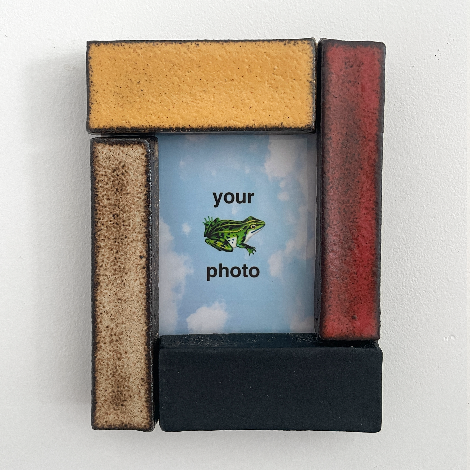 This ceramic picture frame is handmade in our Brooklyn studio and holds an Instax mini photo. All frames come standard with strong magnets on the back as well as a small hole to hang on the wall. Due to the handmade nature, each one is unique and may have slight variations from the product photo.