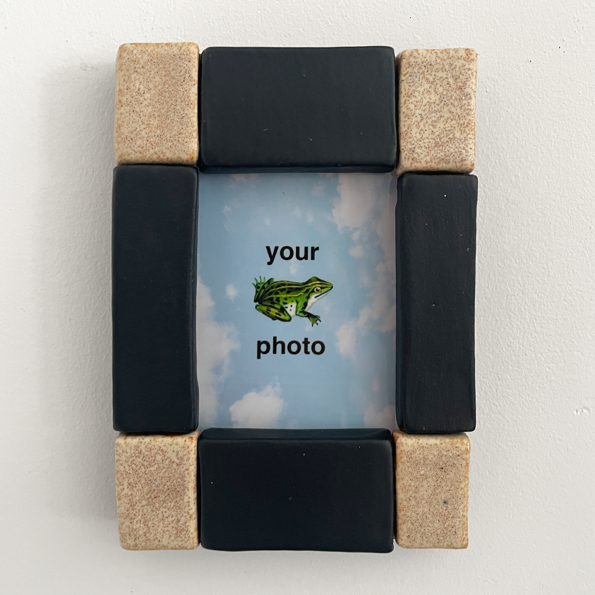 This ceramic picture frame is handmade in our Brooklyn studio and holds an Instax mini photo. All frames come standard with strong magnets on the back as well as a small hole to hang on the wall. Due to the handmade nature, each one is unique and may have slight variations from the product photo.